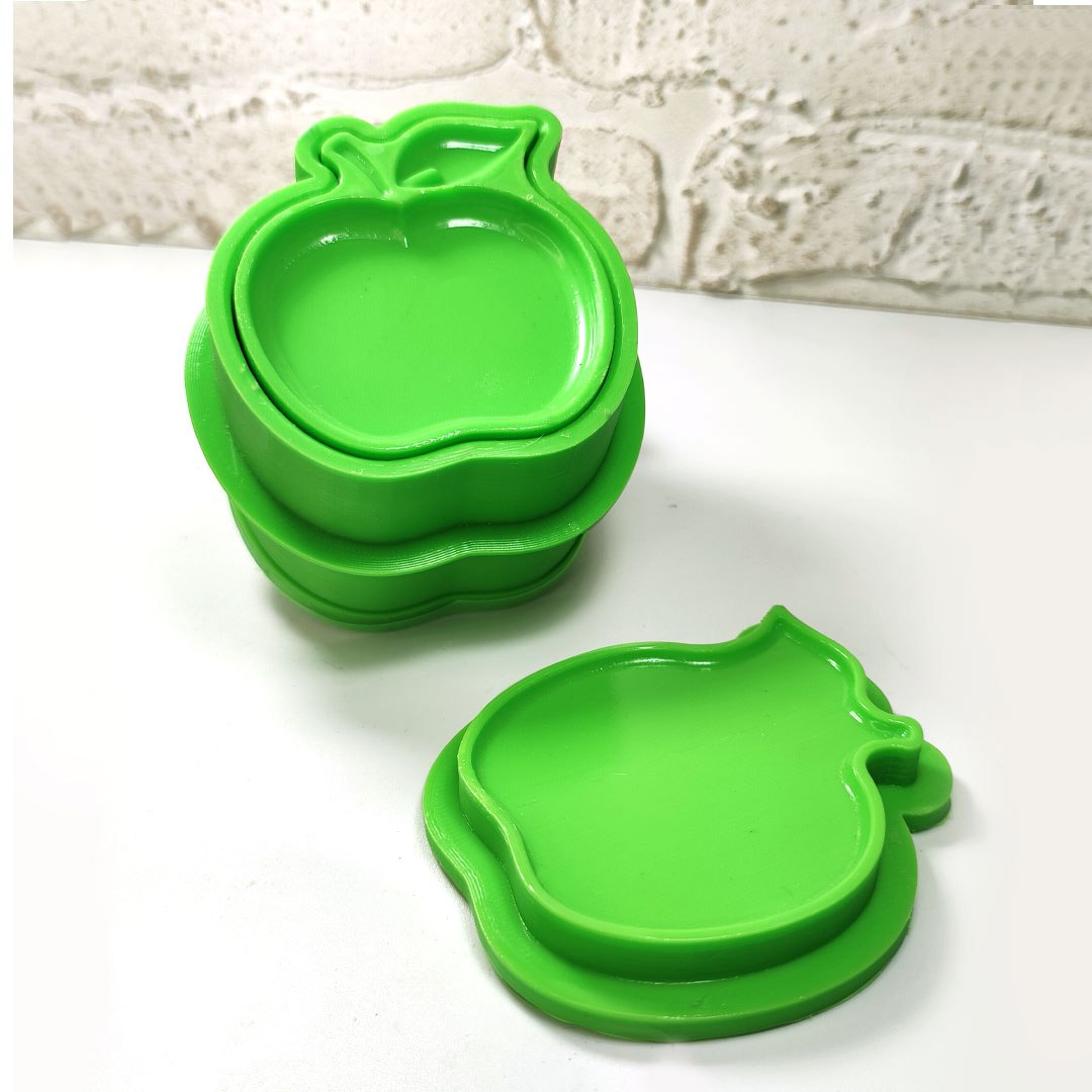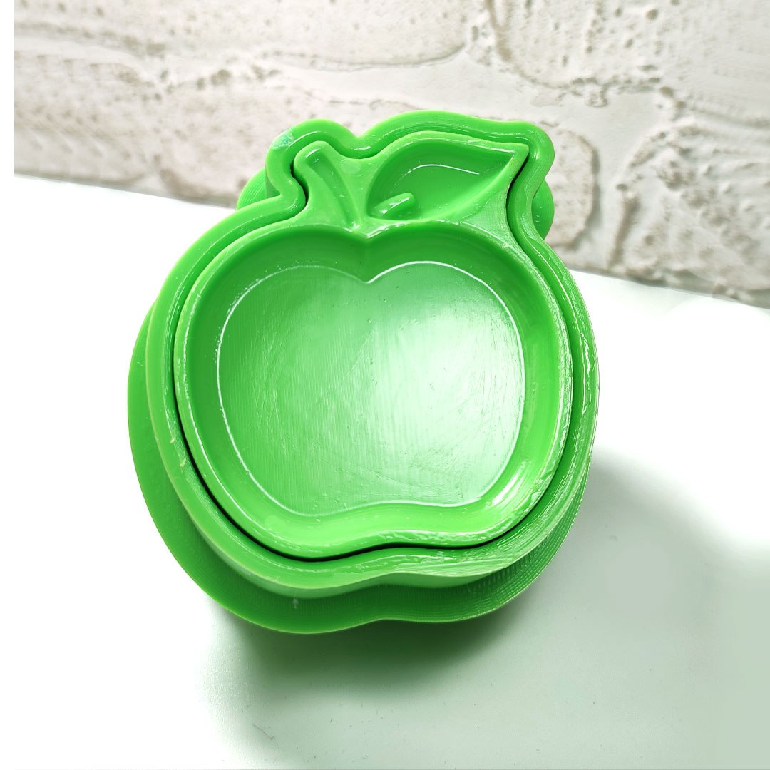 قالب سیب از جمله طرحهای پرطرفدار و چندمنظوره است. در تابستان با حالوهوای میوه، در بهار به عنوان طرح هفتسین و در پاییز با تم بازگشت به مدرسه بسیار پرفروش میباشد. این قالب ساده، زیبا و کاربردی بوده و در تمامی وزنها و مواد بهخوبی قالبگیری میشود.